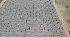 - فهو بلاط خرسانى يتم رصه بدون استخدام مونة أسمنتية بل يركب مباشرة فوق الرمل المدكوك والسبب فى ذلك هو ترابطه بأسلوب